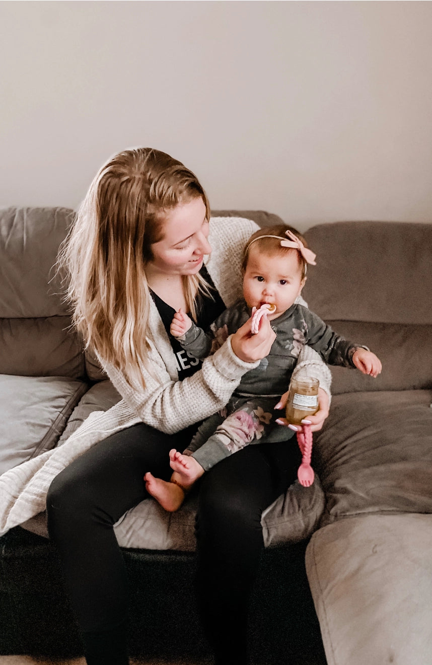 Add some style to mealtime with our adorable silicone baby utensil set! The Sweetie Spoon™ design has a looped handle that is easy for baby to pick up with their small hands, complete with a braided pattern that adds texture. Made entirely of food grade silicone, Sweetie Spoons™ are gentle in baby’s mouth and are intended for ages 6 months and up. This spoon and fork set is perfect for helping your little one on their journey towards self-feeding.